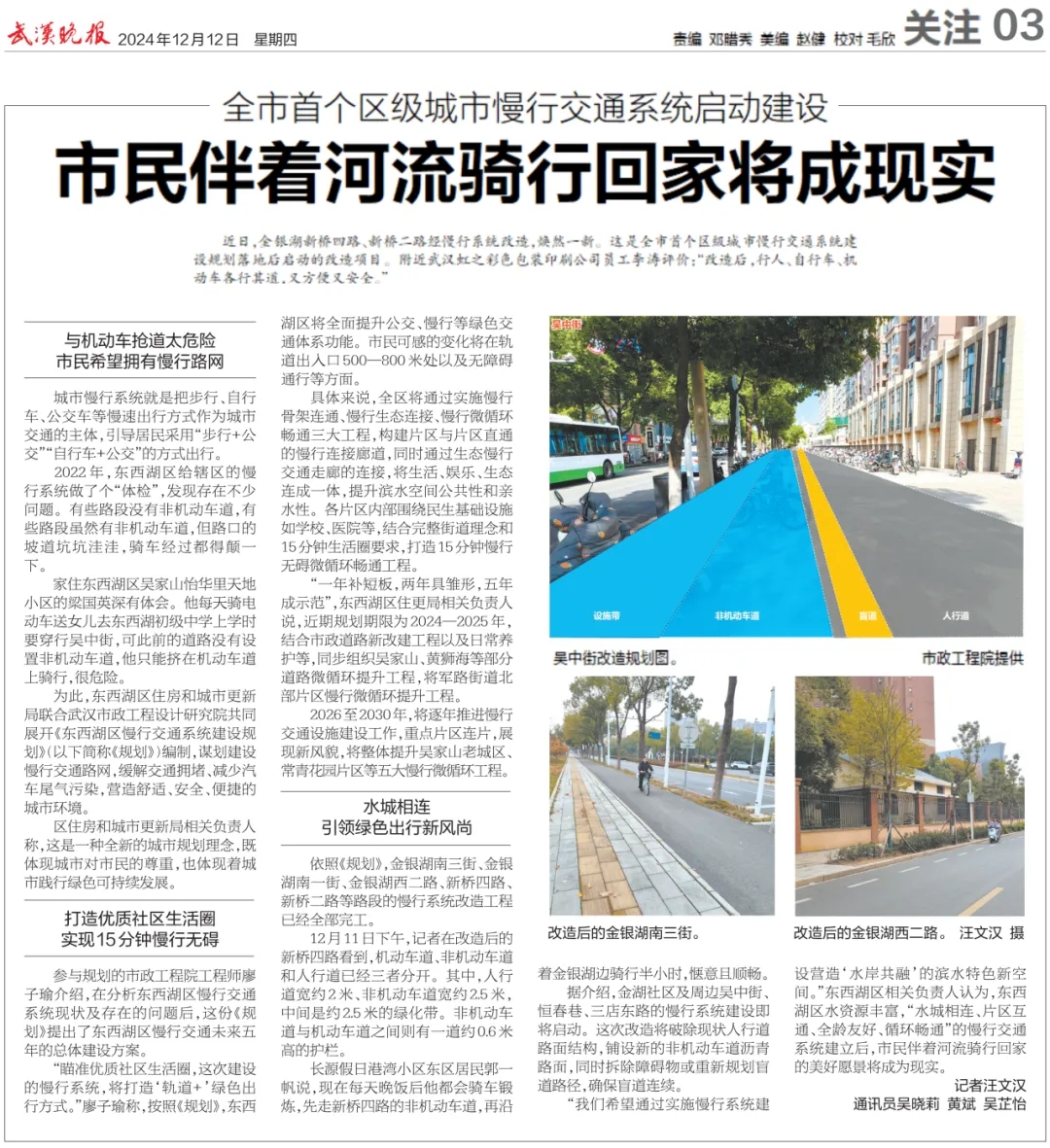 12月12日,《武漢晚報(bào)》等多家媒體紛紛報(bào)道《全市首個(gè)區(qū)級(jí)城市慢行交通系統(tǒng)啟動(dòng)建設(shè)》。