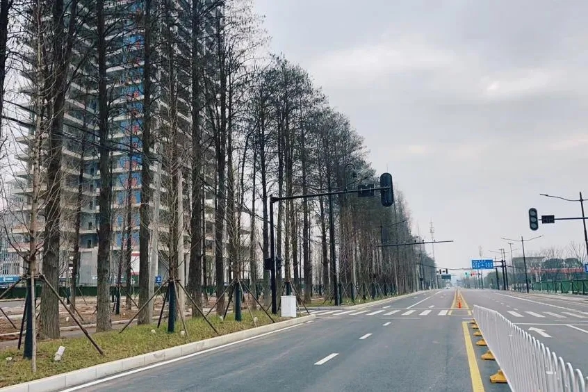 ? ? 在興盛路附近,保留了原有的200余株近40年樹齡的水杉,形成了獨(dú)特的水杉景觀帶。這些水杉不僅是城市的歷史記憶,也與現(xiàn)代化的工程建設(shè)完美融合,體現(xiàn)了自然與人文的和諧統(tǒng)一。