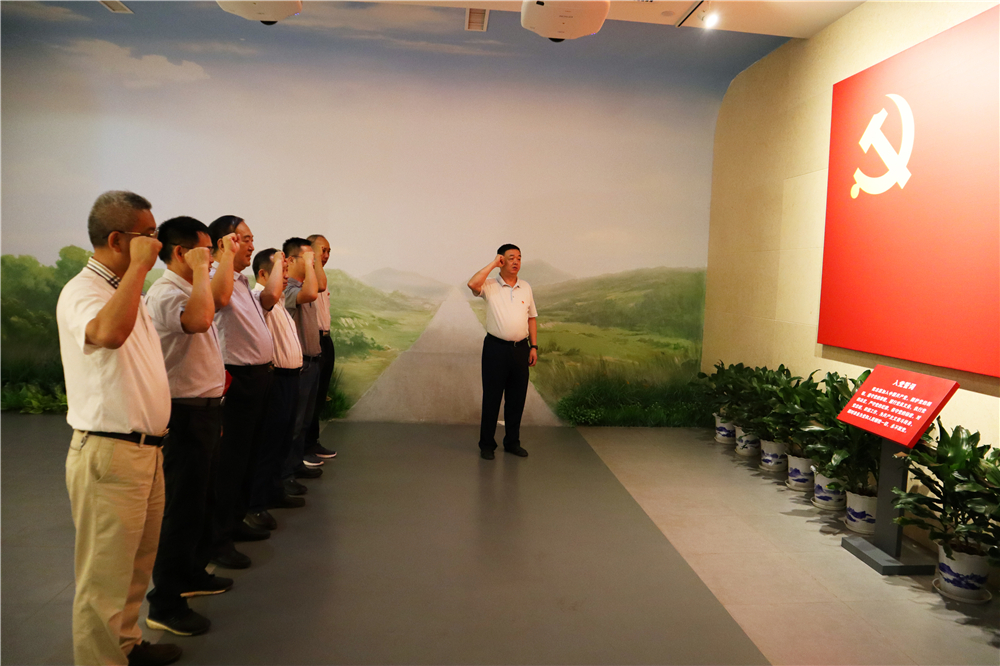 從哪里來,到哪里去。翻開風云激蕩的紅色篇章,在歷史中汲取力量,為的是不忘初心、牢記使命、永遠奮斗。氣勢恢宏的序廳,穹頂上的鐵錘鐮刀分外醒目,巨幅黨旗如鮮血浸染。公司黨委書記蔡輝帶領(lǐng)其他領(lǐng)導班子成員一道重溫入黨誓詞,他們舉起右拳、莊嚴宣誓。“我志愿加入中國共產(chǎn)黨,擁護黨的綱領(lǐng),遵守黨的章程……”他們的聲音交匯在一起,一字一句,句句鏗鏘。在錚錚誓言中,大家仿佛再一次真切體會到早期共產(chǎn)黨人艱苦卓絕的探索和奮斗。