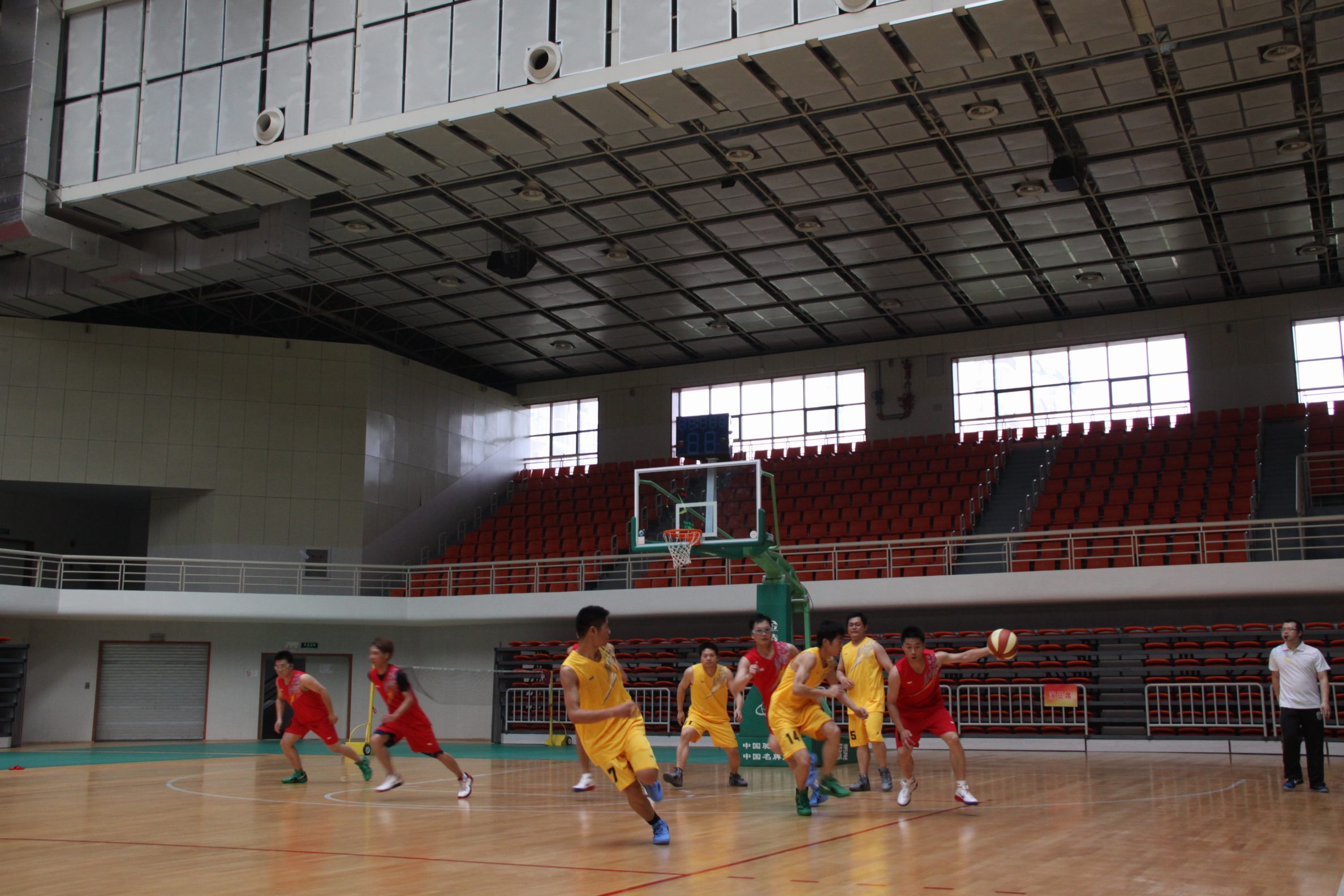 ??? 籃球?qū)氊悅冇脛痈惺愕睦怖膊贋楸荣惱_了序幕。本次比賽在綜合考量隊員實力的基礎上,組建兩支球隊進行比賽。比賽從一開始便進入快節(jié)奏,雙方你來我往互不相讓,場上精彩場面不斷,引得場下觀眾頻頻較好。