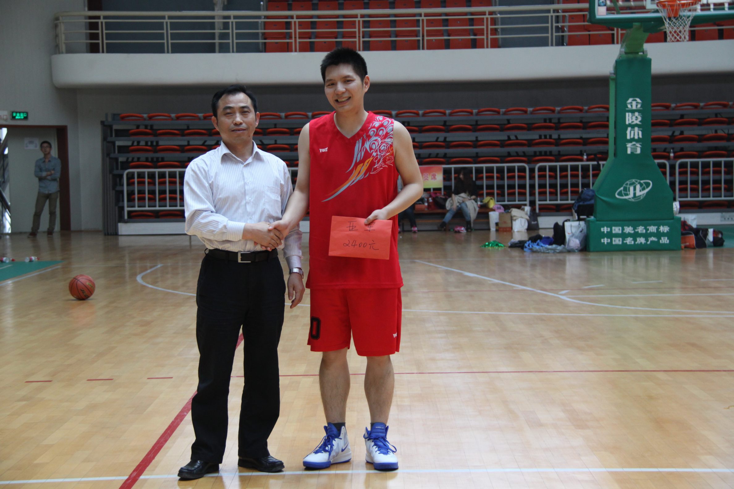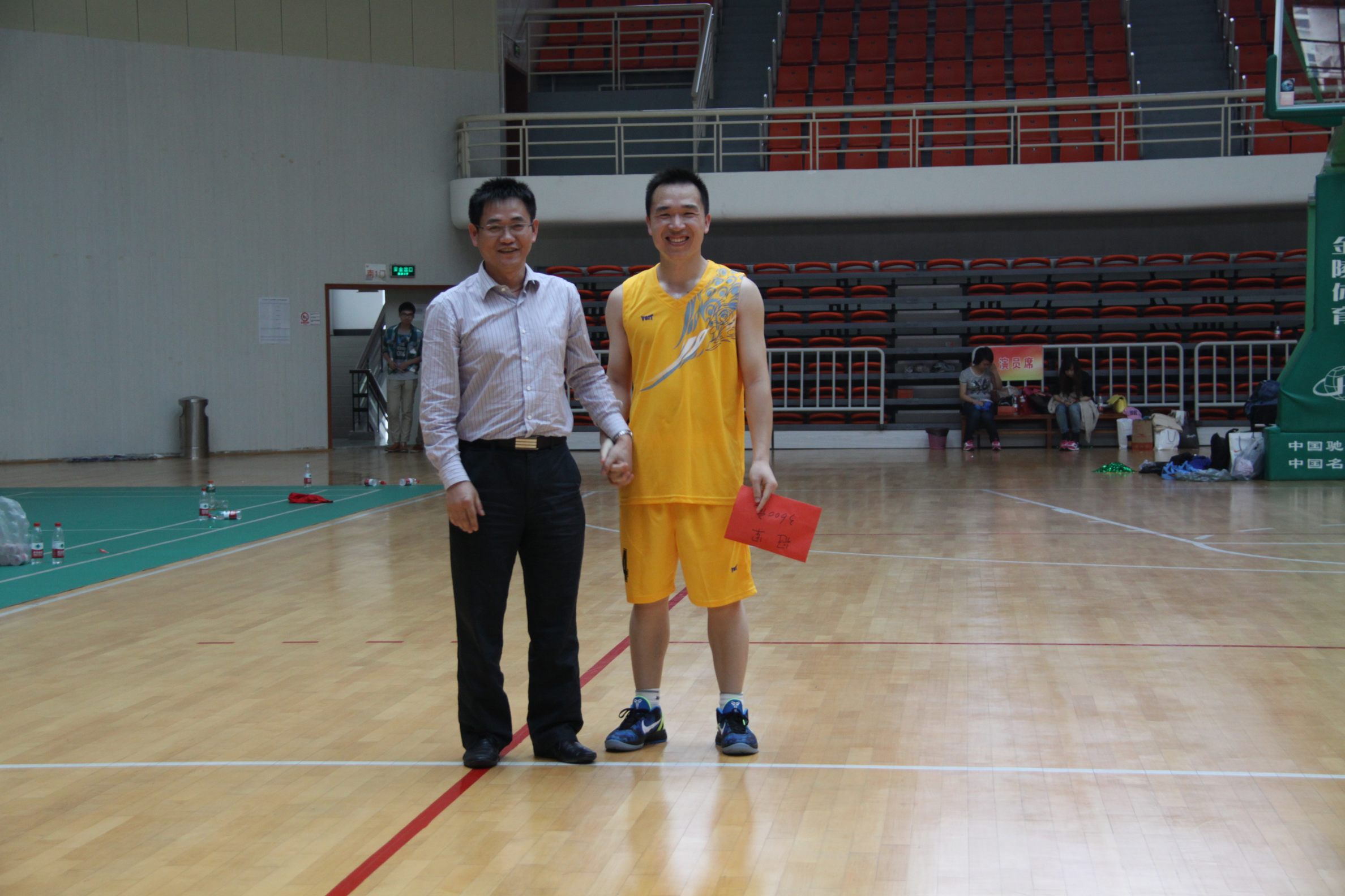 ??? 經(jīng)過激烈的角逐,第一代表隊以三分的微弱優(yōu)勢奪得了冠軍,其中該隊7號殷正剛?cè)珗鐾吨兴膫€三分球,總得分24分當仁不讓成為賽事得分王。公司董事長柯昌春、總經(jīng)理姚華、工會主席趙世杰分別為冠亞軍球隊及得分王頒獎。