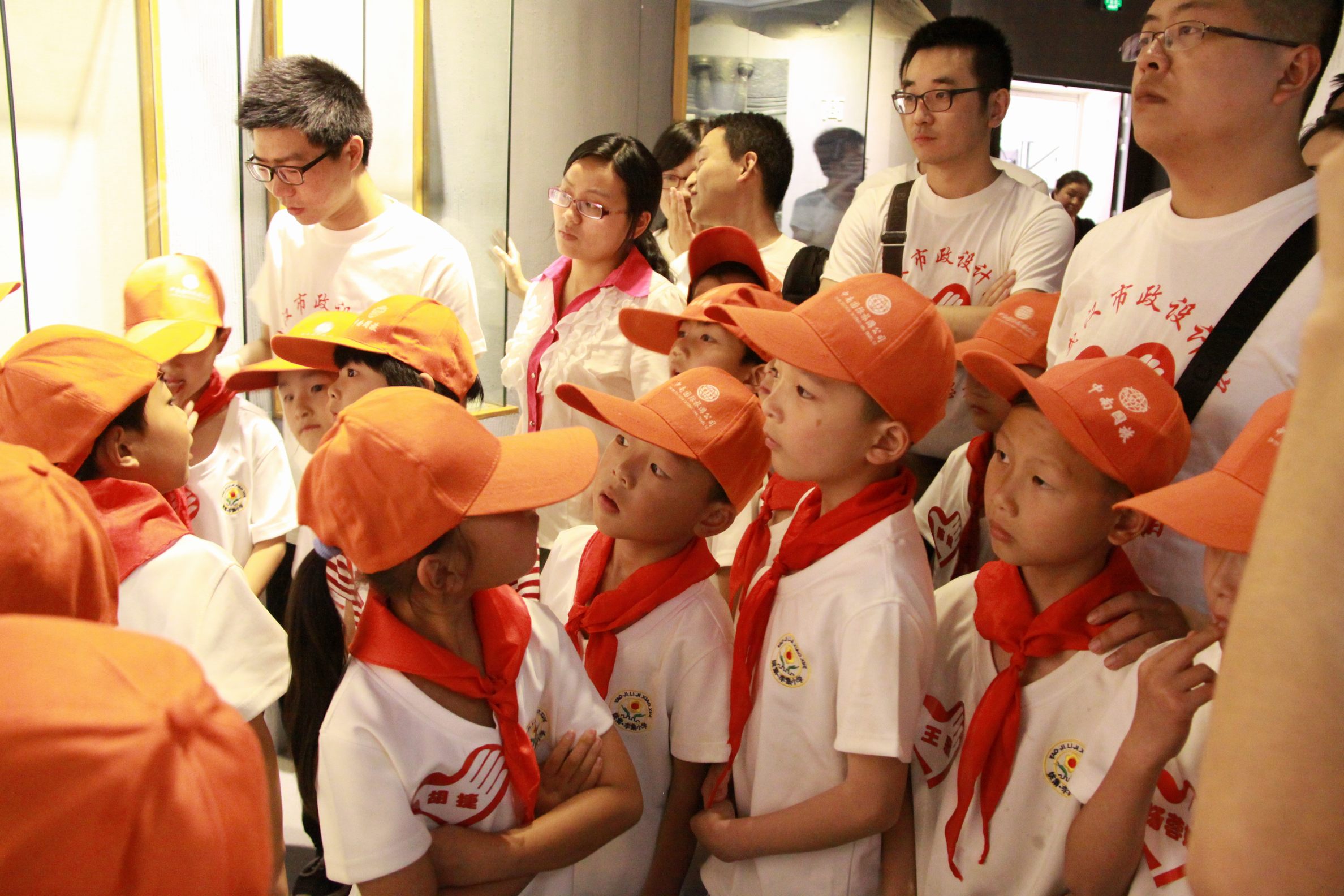??? 為了保證本次活動(dòng)的順利進(jìn)行,公司安排了二十名志愿者與學(xué)生們一對(duì)一結(jié)對(duì)而行。上午十點(diǎn),當(dāng)滿(mǎn)載學(xué)生的車(chē)輛緩緩駛進(jìn)活動(dòng)的第一站——武漢市博物館時(shí),早已等候在那里的志愿者們用掌聲歡迎遠(yuǎn)道而來(lái)的小客人,并與自己結(jié)對(duì)的學(xué)生手牽手走入博物館參觀。學(xué)生們跟隨導(dǎo)游的講解,了解了武漢由發(fā)祥到發(fā)展,到今天取得的成就。部分古代出土的器物吸引住了他們的目光,他們有的圍在導(dǎo)游周?chē)鷨?wèn)這問(wèn)那,有的拉著結(jié)對(duì)的哥哥姐姐合影拍照。