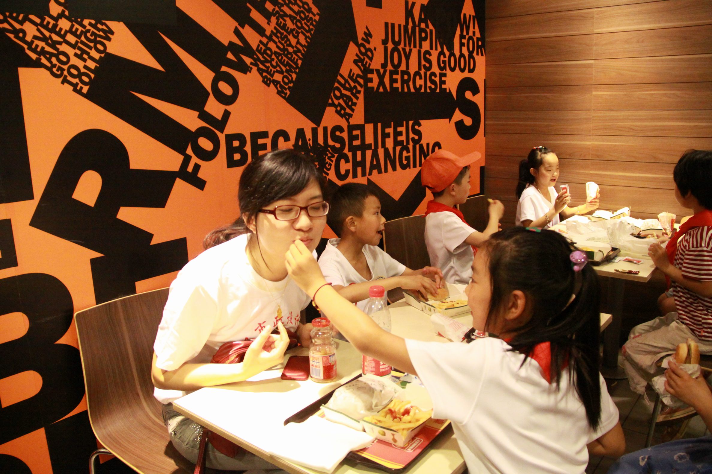 ??? 中午時(shí)分,孩子們乘車(chē)來(lái)到公司,公司黨委書(shū)記蔡輝、副總經(jīng)理趙世杰走出辦公樓歡迎師生們的到來(lái),并與他們合影留念。隨后,志愿者與小朋友們一起來(lái)到麥當(dāng)勞餐廳共進(jìn)午餐,餐廳游樂(lè)區(qū)的玩具引起了孩子們的極大興趣,他們上攀下爬,玩的不亦樂(lè)乎。