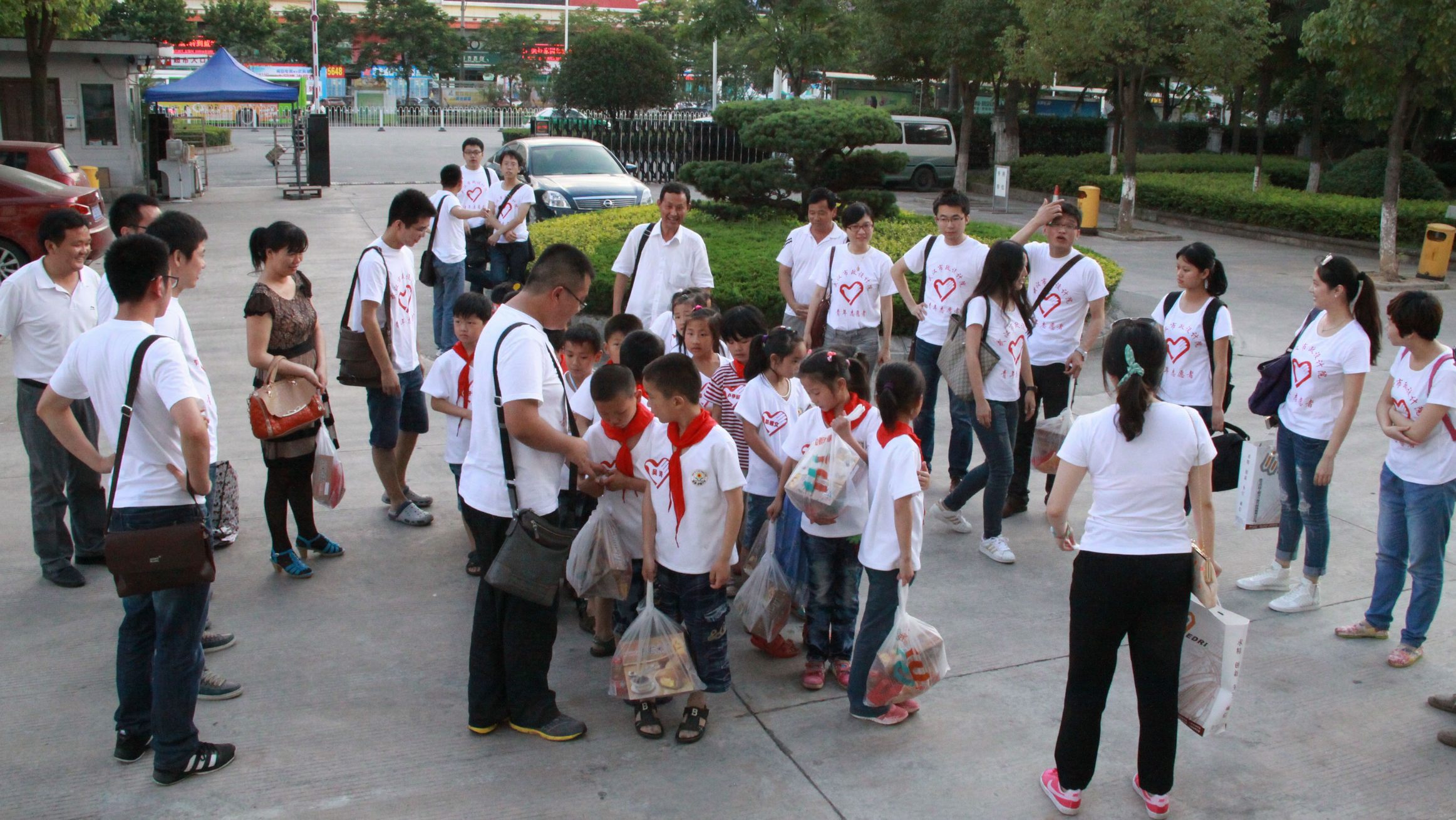 ??? 晚餐結(jié)束后,志愿者們與孩子們手拉手走出公司大門(mén)。志愿者隊(duì)長(zhǎng)向李集小學(xué)領(lǐng)導(dǎo)贈(zèng)送了文體用品,隊(duì)員們也為孩子們送上早已準(zhǔn)備好的食品及小禮物,并送他們上車(chē)。告別的瞬間,隊(duì)員們向車(chē)上的孩子們揮手告別,目送車(chē)輛遠(yuǎn)去,車(chē)上的孩子們也揮動(dòng)著自己的小手,向公司志愿者們致意,為這次充實(shí)而難忘的活動(dòng)畫(huà)上了圓滿(mǎn)的句號(hào)。