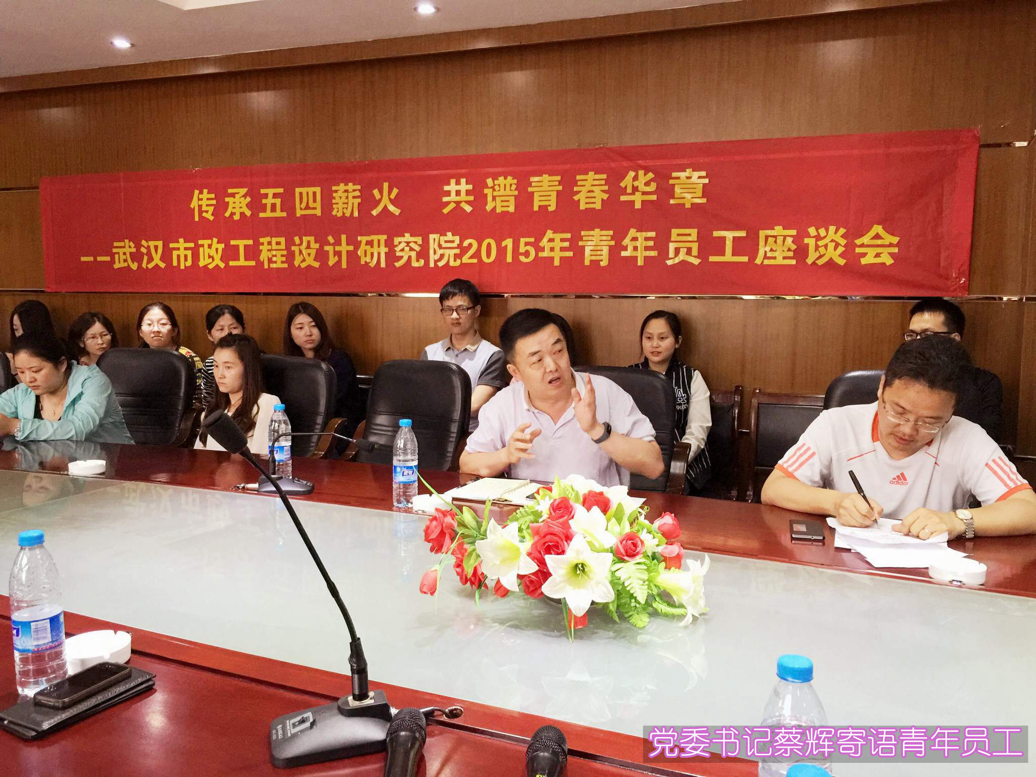 ??? 5月8日下午,一場(chǎng)以“傳承五四薪火,共譜青春華章”為主題的青年員工座談會(huì)如期舉行,公司黨委書(shū)記蔡輝、綜合辦公室副主任呂擁軍與公司青年員工圍坐在一起,傾聽(tīng)青年員工的心聲,感受青年員工思想的碰撞。