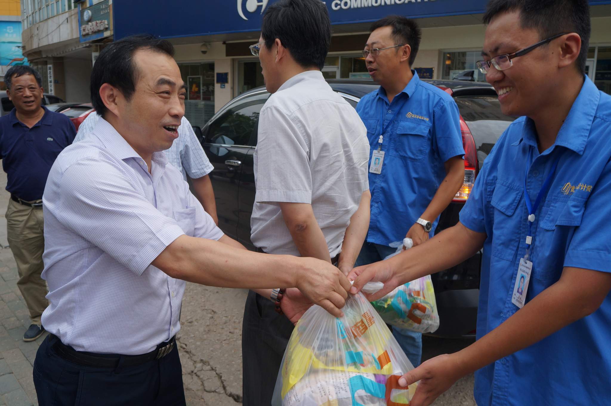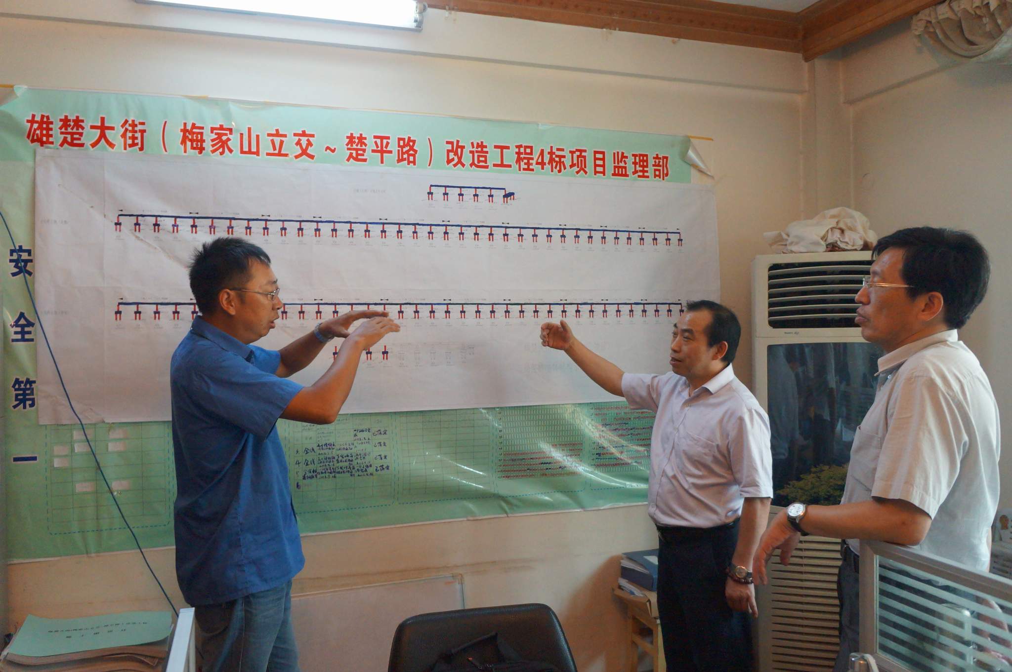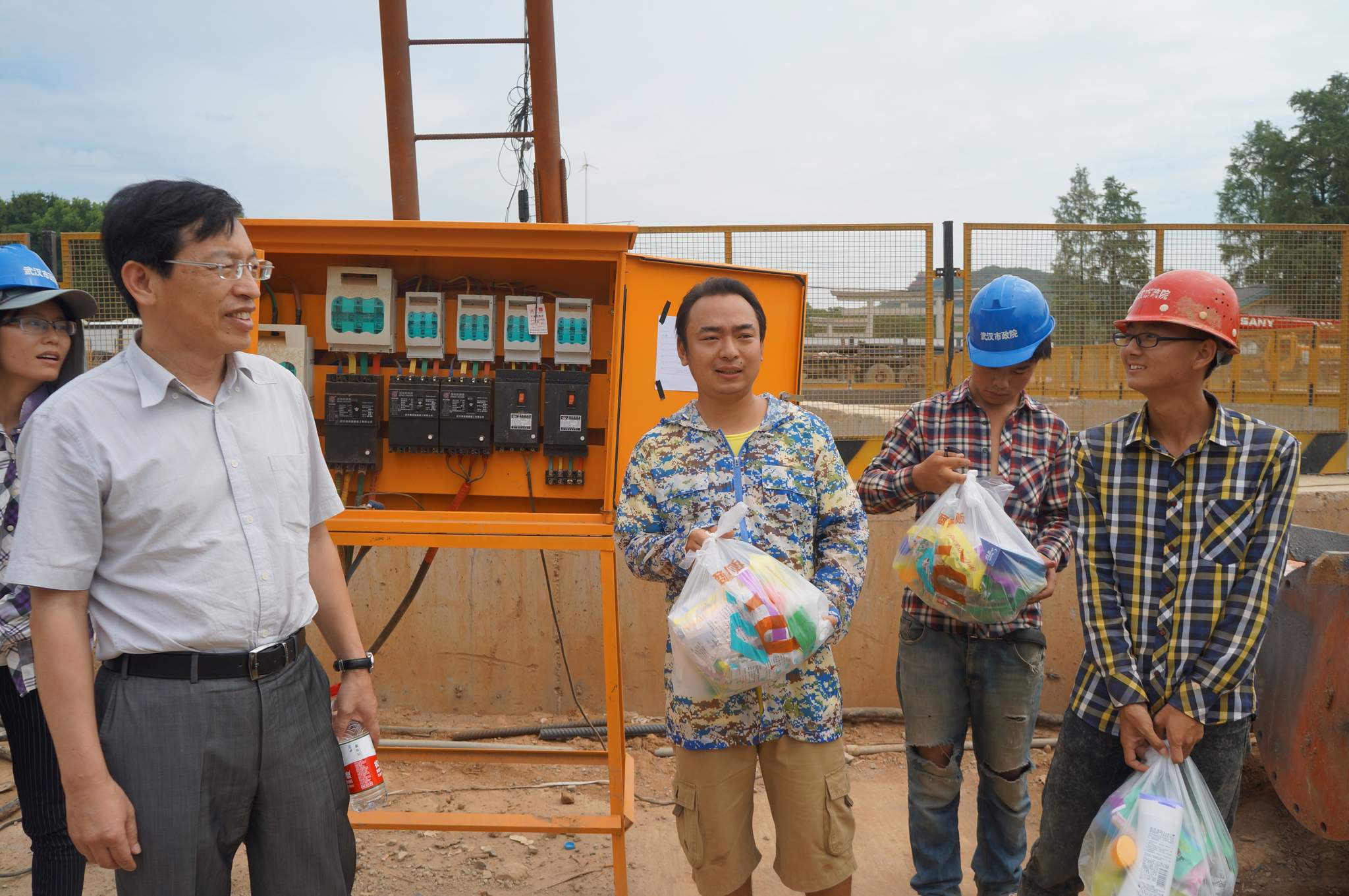 ??? 8月5日,公司總經(jīng)理姚華、副總經(jīng)理趙世杰帶領(lǐng)綜合辦公室、監(jiān)理公司、勘測設(shè)計(jì)院等部門負(fù)責(zé)人,對部分工地進(jìn)行了走訪慰問,為高溫下堅(jiān)持工作的一線員工送上一份清涼。